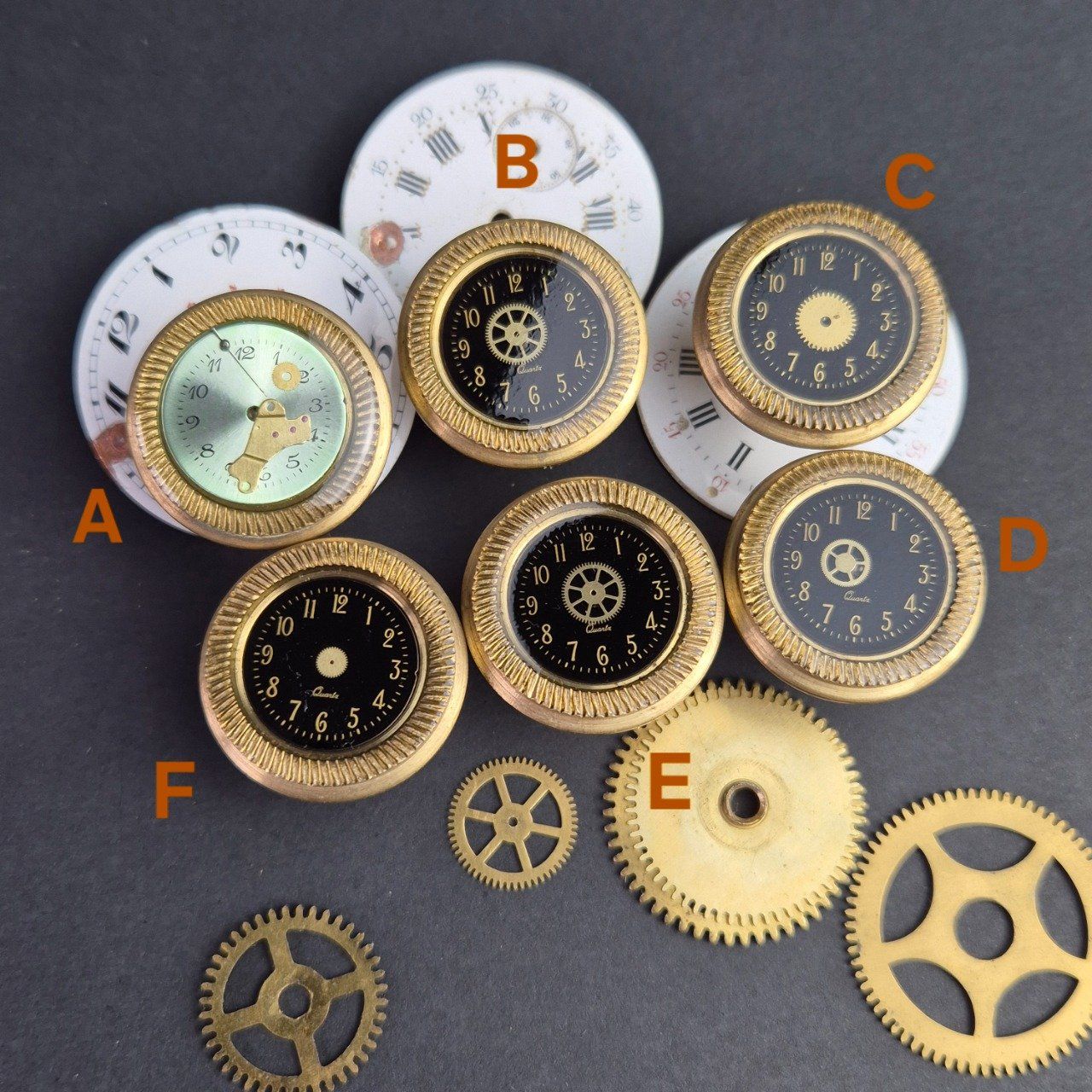 Après avoir déposé un cadran de montre de poignet et/ou engrenages, j'ai déposé des composants de montres, réveils ; le tout est ensuite résiné.